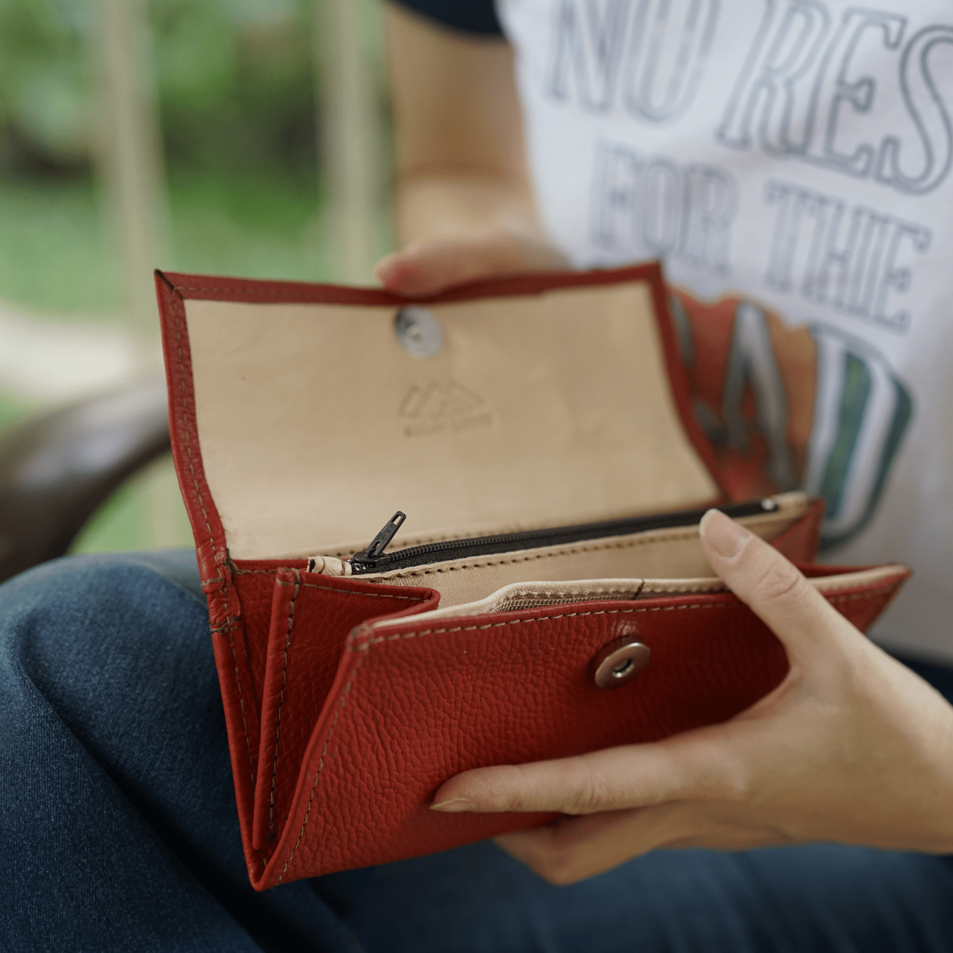 Each wallet is handcrafted by skilled artisans, resulting in small variations that make every piece unique. Its smooth texture and deep red color add a touch of sophistication that pairs beautifully with any outfit.